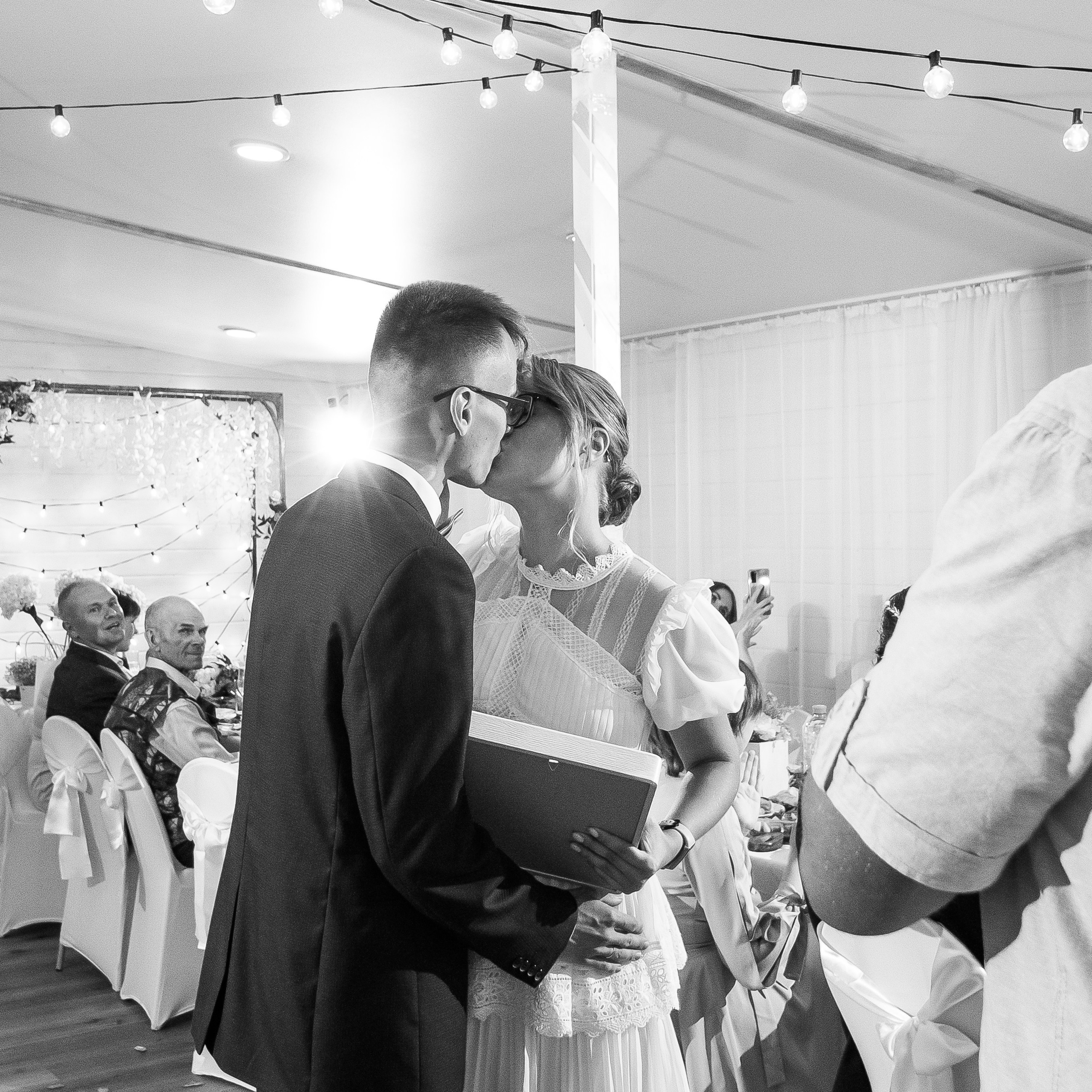 — частичная естественная ретушь крупных и средних фотографий молодоженов до начала банкета.